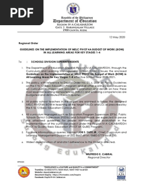 Bow Regional Order As Of May 21 2020 With Shs Pdf Pdf Educational Assessment Distance Education