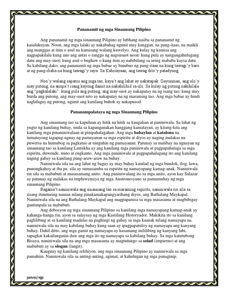 Pananamit Ng Mga Sinaunang Pilipino Pdf